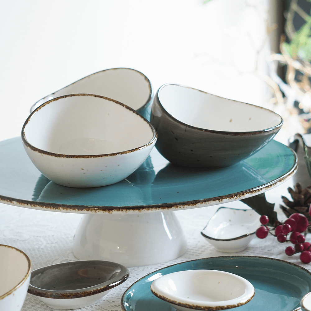 Hand-glazed bowls with an asymmetric shape that reflects artisanal craftsmanship. Perfect for serving snacks, dips, or desserts with rustic charm.